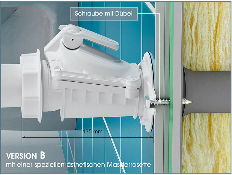 A special aesthetic masking rosette allows the valve to be mounted to the wall by means of two screws.
